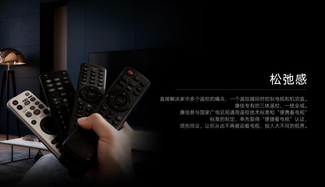 在家居场景中,“电视遥控、机顶盒遥控、影音设备遥控堆在一起,换台要找、切信号源要换”,早已成为多数家庭的共同烦恼。而康佳R10系列,以“三体遥控”为核心,直击这一操作痛点,让电视使用彻底告别繁琐,满溢松弛感。